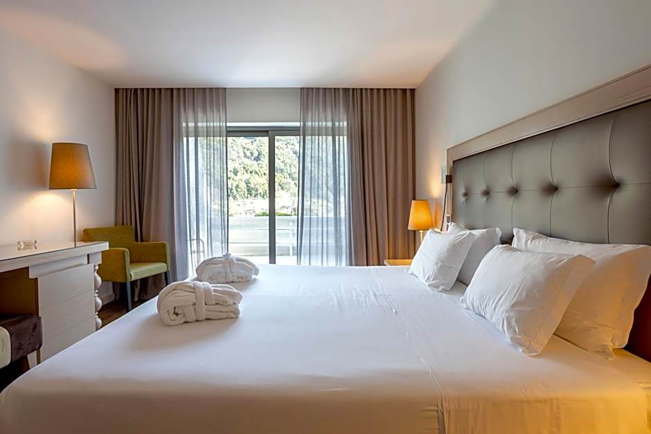 On-site dining centers around Restaurante espelho D'Água, offering Mediterranean cuisine in ambiances spanning family-friendly, traditional, modern, and romantic. Payment options include cash, Visa, and Mastercard. A broad range of rooms is listed, including Standard Room, Premium Suite, Family Room with Balcony, Room With River View, Room With Mountain View, and many others. These rooms often feature mountain or river views, soundproofing, a balcony, a bathtub, free toiletries, and non-smoking options, with beach access and free on-site parking complementing the coastal getaway.